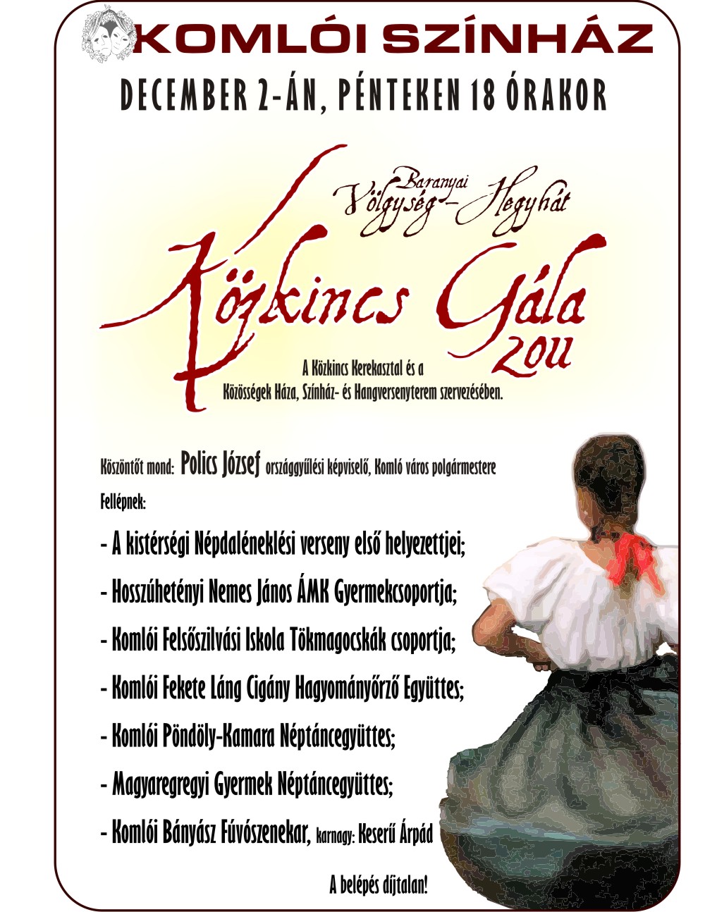 Fellépnek: Kistérségi Népdaléneklési verseny első helyezettjei, Hosszúhetényi Gyermekcsoport, Tökmagocskák, Fekete Láng, Pöndöly-Kamara, Magyaregregyi Gyermek Néptáncegyüttes, Komlói Bányász Fúvószenekar