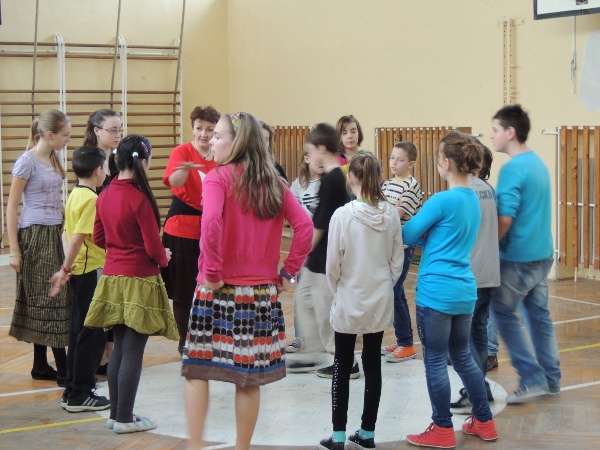 Ezután a csoport „összerázása” lett a feladat, ott voltak a „régi” táncosok a – 6., 7.osztályosok – és az új táncosok, a „kicsik”. Nem voltak teljesen zökkenőmentesek az első próbák Bár a gyerekek ismerték egymást, de a „nagyok úgy gondolták, hogy ők a tapasztaltabbak és ügyesebbek és ezt a kicsiknek is tudniuk kell. Éreztették ezt a próbákon.