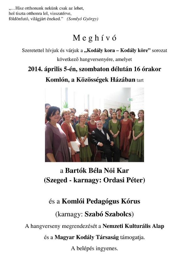 a Bartók Béla Női Kar (Szeged - karnagy: Ordasi Péter) és a Komlói Pedagógus Kórus hangversenye a Közösségek Házában.