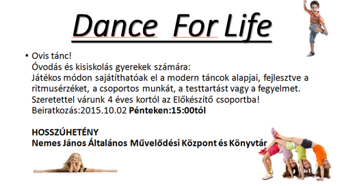 Táncoktatás indul óvodás és kisiskolás gyermekek számára - Dance for Life