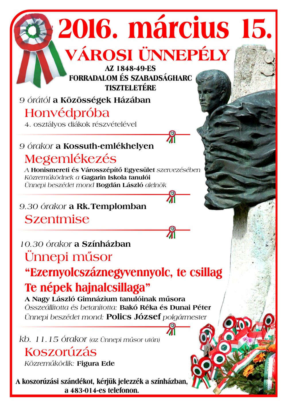 VÁROSI ÜNNEPÉLY AZ 1848-49-ES FORRADALOM ÉS SZABADSÁGHARC TISZTELETÉRE